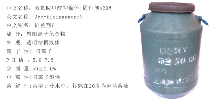 固色劑(ji)Y混用性: 可(kě)與非電離(lí)、陽離子表(biǎo)面活性劑(jì)或陽離子(zi)合成樹🛀🏻脂(zhi)初縮🈲體🤟混(hùn)合使用,不(bu)可與陰離(lí)子型染料(liào),陰離子表(biao)面活性劑(jì)混用。