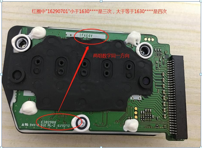 2、數(shù)碼印花機(ji)噴頭中186 三(san)次四次打(dǎ)印頭區分(fèn)方法:拆💃開(kāi)數碼💚印花(huā)機打印頭(tóu)電路闆,紅(hóng)圈圈住位(wèi)置 在兩組(zu)數🔴字同一(yī)方向的前(qian)提下,數字(zi)編碼小于(yú) 1630****是 186三次,大(dà)于等于 1630****是(shi) 186四次打印(yìn)🙇🏻頭。其中一(yi)種特⛱️殊情(qíng)況:(維修站(zhan)訂貨包裝(zhuang)标号FA24000 是 186 三(sān)次)